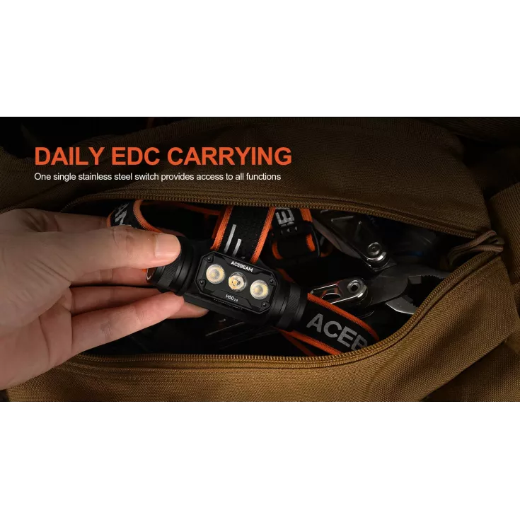 The Acebeam H50 2.0 is made from aluminium alloy with a hard anodised finish and includes an ergonomically designed bracket mount and breathable headband.