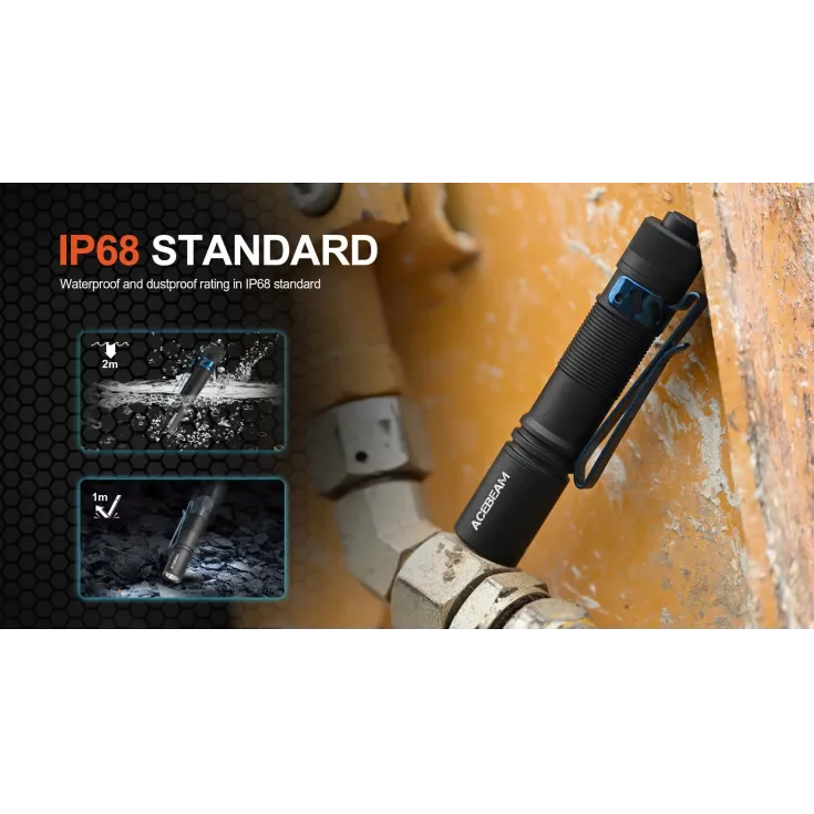 Acebeam Pokelit AA Includes: USB-C 1 x 14500 Li-ion rechargeable battery and removable bi-directional pocket clip.