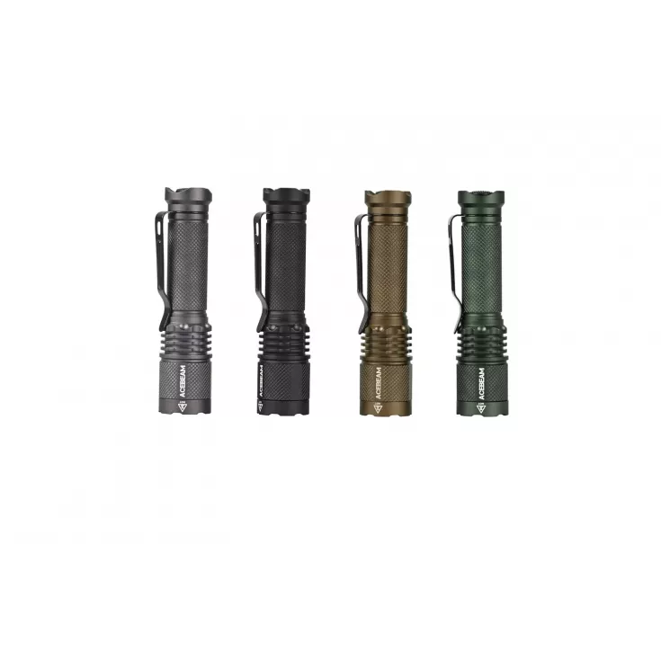 Includes: Acebeam 14500 Li-ion battery with built-in USB-C port, lanyard, pocket clip, spare o-rings, USB-C cable.