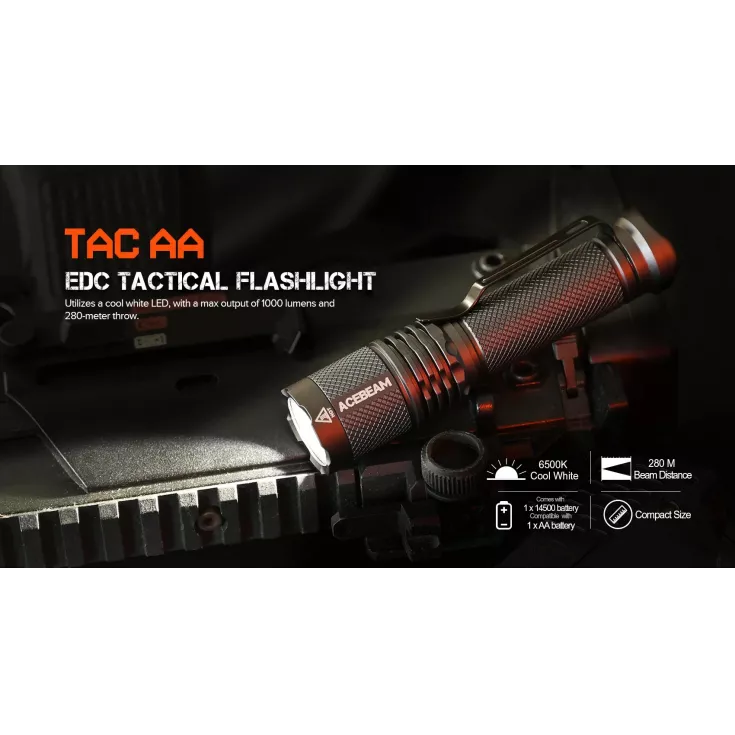 The torch is small and compact without compromising on output and has a glass breaker bezel for emergency use. The TAC AA includes a stainless steel pocket clip for secure attachment to clothing or accessories when not in use and the anti-knurling provides a stable, comfortable grip.