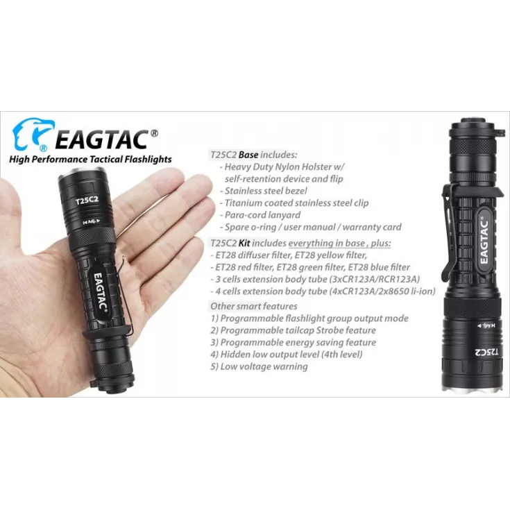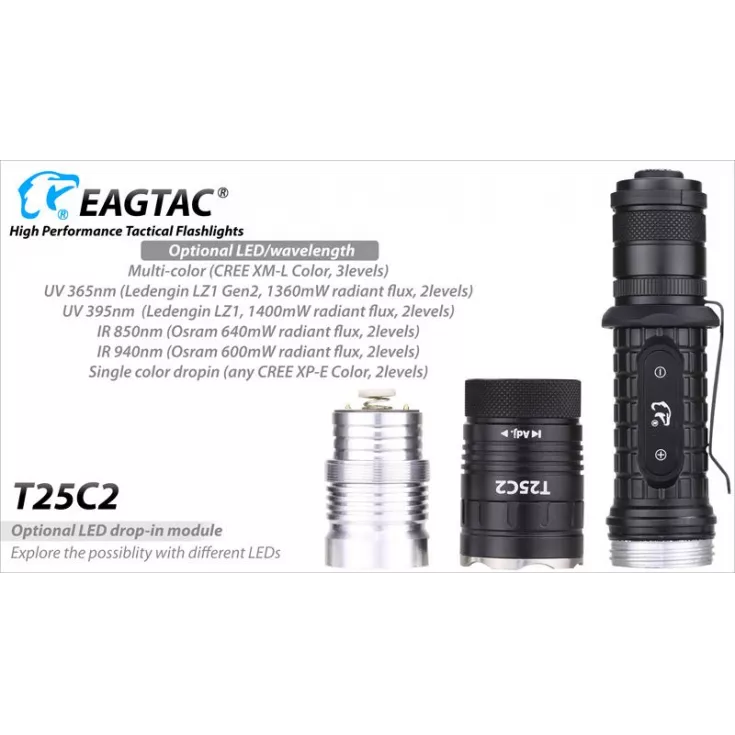 They can be upgraded in the future thanks to the changeable drop in LED module. Eagletac also plan to release UV and IR modules that will be a direct replacement for the XM-L2 module the T25C2 comes with as standard, making it both versatile and future proof.