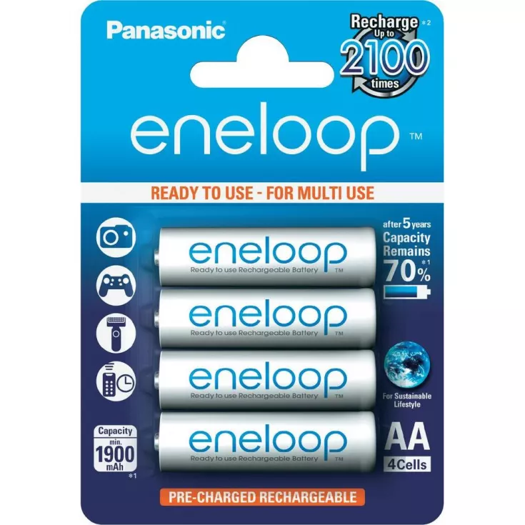 Ready charged Sanyo Eneloop AA Batteries.