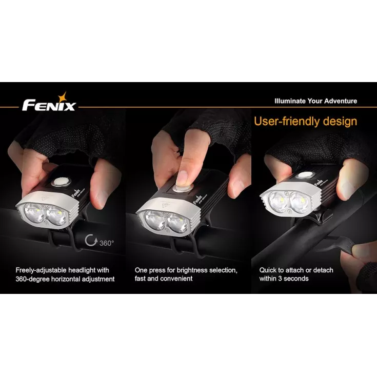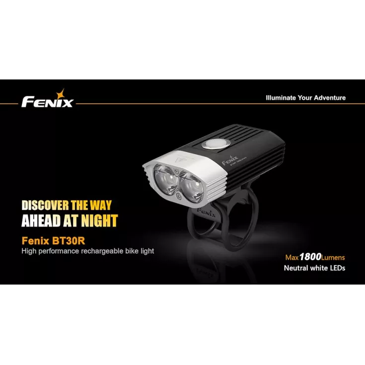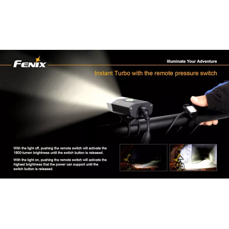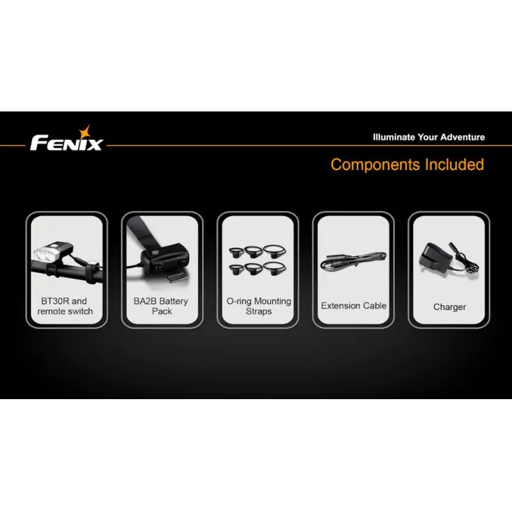 There is a remote control switch for the 1800 lumen burst. The Fenix BT30R has an aspherical reflector with a wide beam angle and an anti-glare lens. The fully adjustable O-ring mounting system enables accurate beam placement and quick attachment/detachment of the light, perfect for when you are on the go! There are 3 mounting straps to accommodate handle bars of 30-35 mm, 24-30 mm and 20-24 mm.