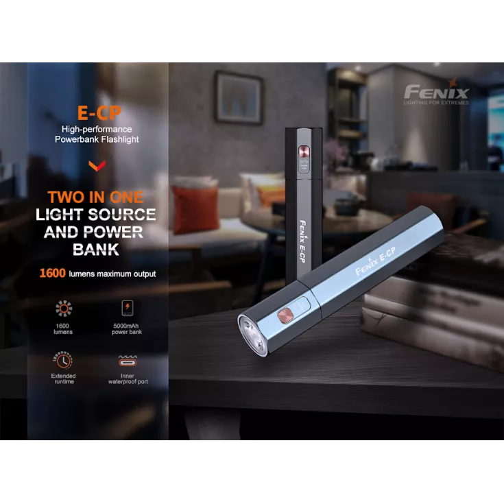 The Fenix E-CP rechargeable power bank and torch features a Luminus LED offering an impressive 1600 lumens maximum output.