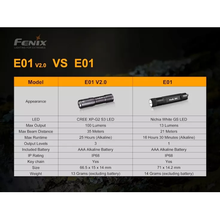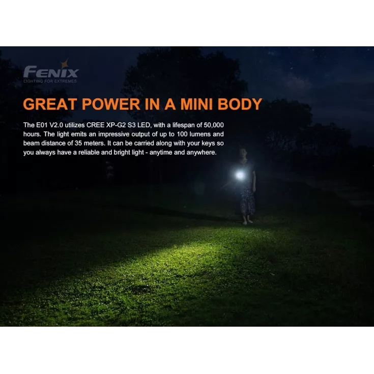 The Fenix E01 V2.0 is the upgraded version of the popular E01 keyring light and offers lots of improvements whilst keeping the best and most loved features. The E01 V2.0 has a maximum output of 100 lumens from the Cree XP-G2 S3 LED and has two additional brightness levels so you can find the right output for your everyday application.