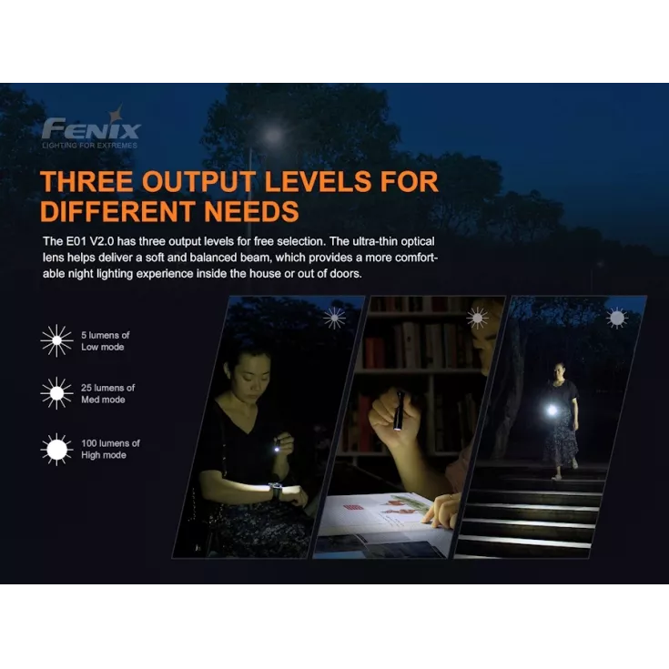 Lighter, sleeker and more compact than its predecessor, the E01 V2.0 is the perfect addition to your keyring, bag, glove box or pocket. The torch has an aluminium body for tough, reliable use even in extreme conditions.