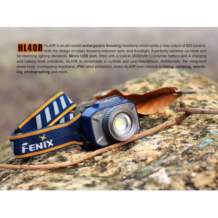 The Fenix HL40R head torch has a maximum output of 600 lumens (Burst mode) from the Cree XP-L HI V2 LED. The lamp is powered by a rechargeable, built-in, Li-poly battery, allowing for quick and convenient charging when you are on the go.