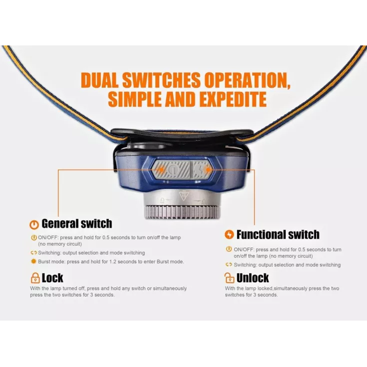 The HL40R features a focusing beam, allowing you to select between spot and floodlight by using the rotary ring on the headlamp. In addition, the head torch offers two modes General and Functional with four constant brightness levels, plus a Burst, reading and SOS mode. The range of outputs is operated by a dual switch on the lamp. The General switch can be held for 0.5 seconds to turn the light on and off in this mode, and single click to cycle through the levels. Use the Functional switch in the same way to access the Functional modes of Reading and SOS modes.
