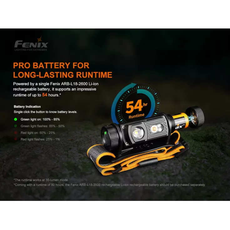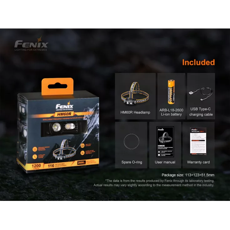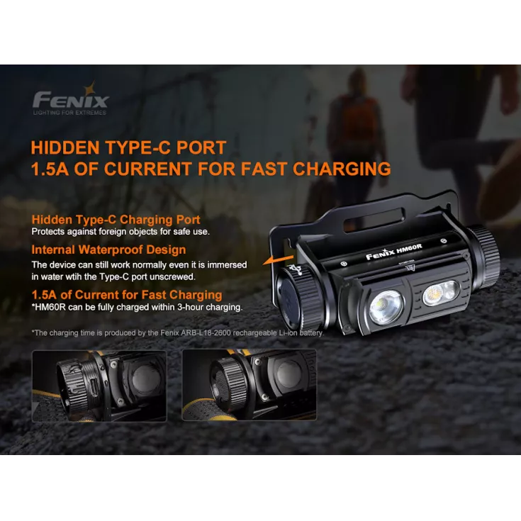 Included with the HM60R is a Fenix ARB-L18-2600 18650 2600mAh Li-ion battery that charges inside the light via USB-C with the included lead. An indicator light shows the remaining battery level so it’s easy to know when charging is required. 1.5A current fast charging in approximately 3 hours.