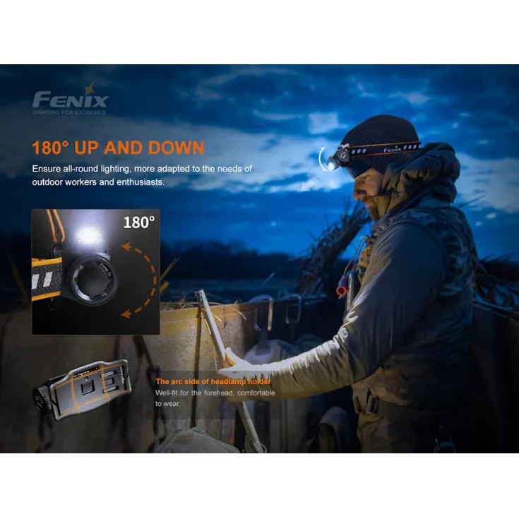 The HM60R light can be angles up and down through 180 degrees and includes an elasticated headband with top strap that is ventilated with anti-slip silicon strip.