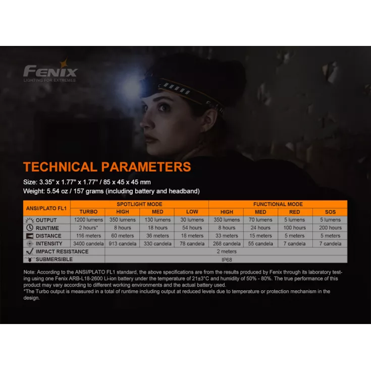 Turbo: 1200 Lumens – 2 hours* – 116 meters