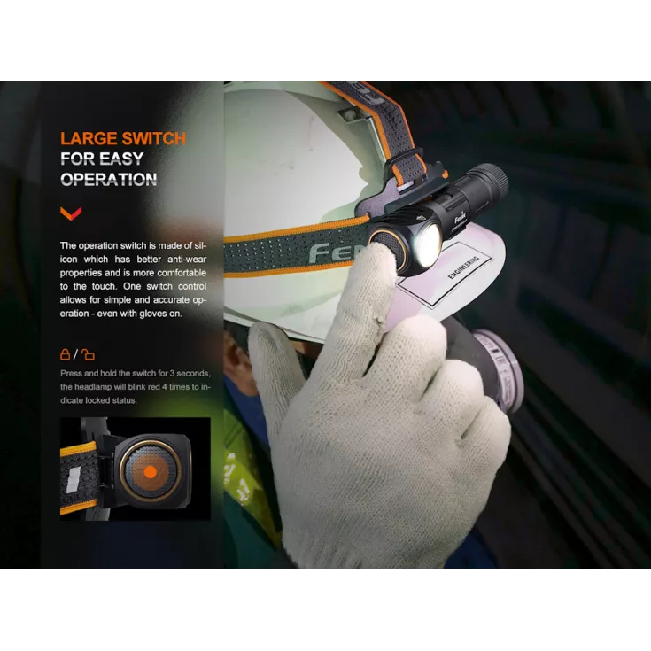 Operation of the Fenix HM61R V2.0 is simple via a single switch on the top of the light and has a lockout mode to prevent accidental operation when not being used.