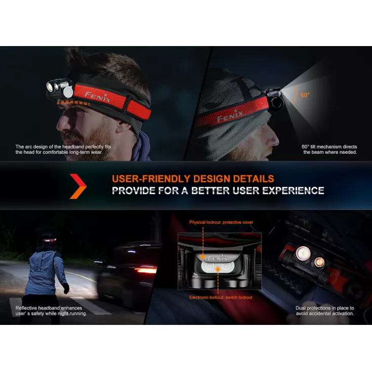 With comfort and durability being paramount, the Fenix headtorch is made with a lightweight magnesium alloy material, providing less weight and longevity. The widened perforated headband ensures a more breathable, stable fit with a comfortable long-term use. It features a new sport fit system providing convenient and flexible adjustment of the band with a single hand while on the move.