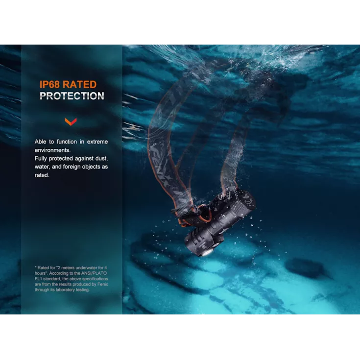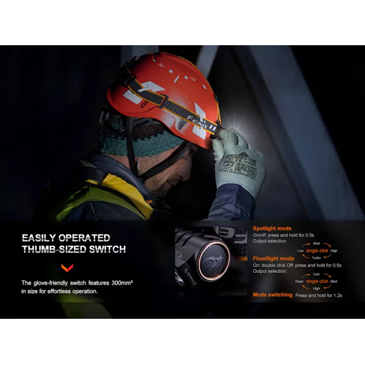 The Fenix HM71R is a high performance rechargeable head torch with separate floodlight and spotlight outputs. The spotlight output has a maximum output of 2700 lumens with a range of 230 meters while the floodlight features a neutral white LED for improved colour rendition at close range.