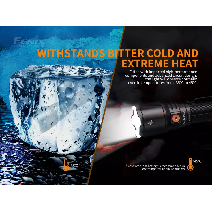 Fenix TK26R Includes: Belt holster, ARB-L18 3500 18650 battery, USB Type-C charging cable, wrist lanyard and spare o-ring.
