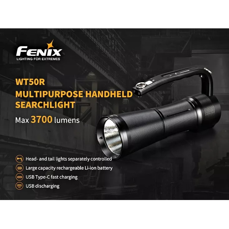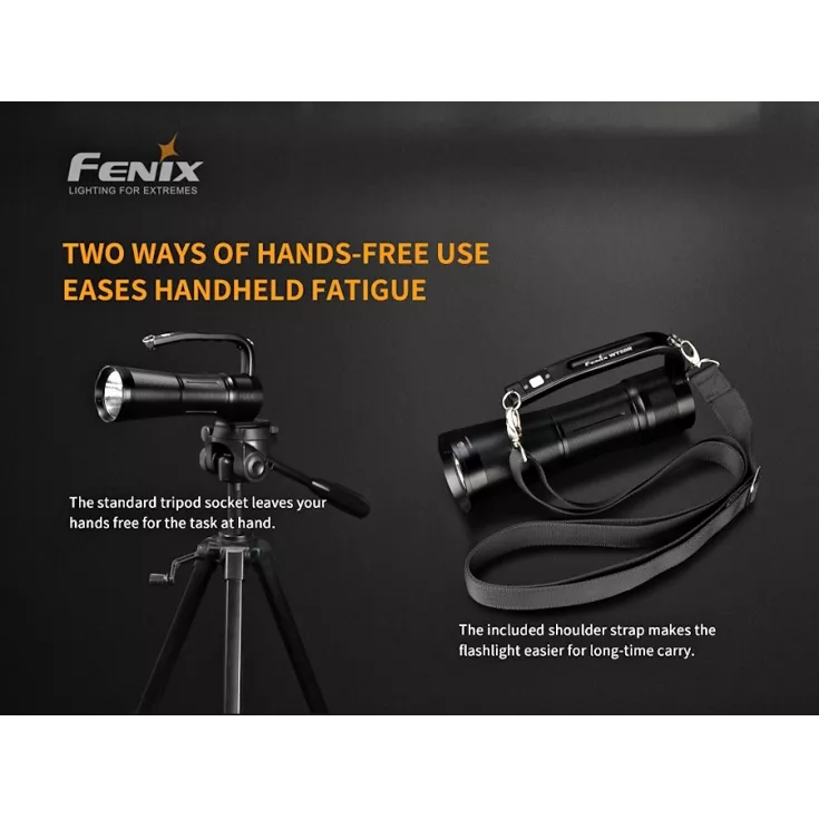 Designed to be the ideal work light, the Fenix WT50R offers multiple uses and carry options, including attachment to a tripod socket, using the included shoulder strap to carry the light across the body or over the shoulder plus a robust, innovative carry handle.