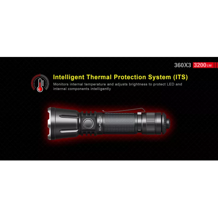 The Klarus 360X3 torch has a maximum output of 3200 lumens from the Cree XHP70.2 P2 LED and is powered by 1 x rechargeable Li-ion 18650 (included) or 2 x CR123 single use or RCR123 Li-ion batteries.