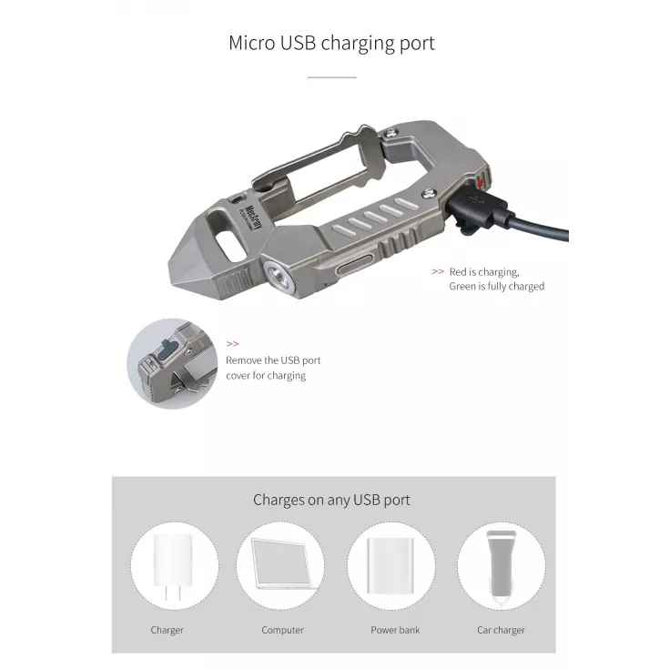 The built-in battery is rechargeable via a micro USB port which can be found at the top of the clip. This quick and convenient charging method ensures you have power when you need it most.