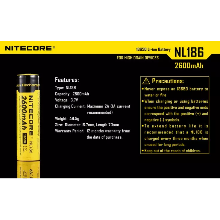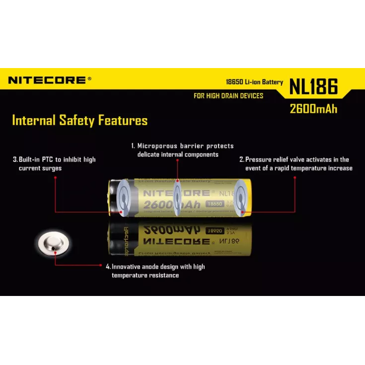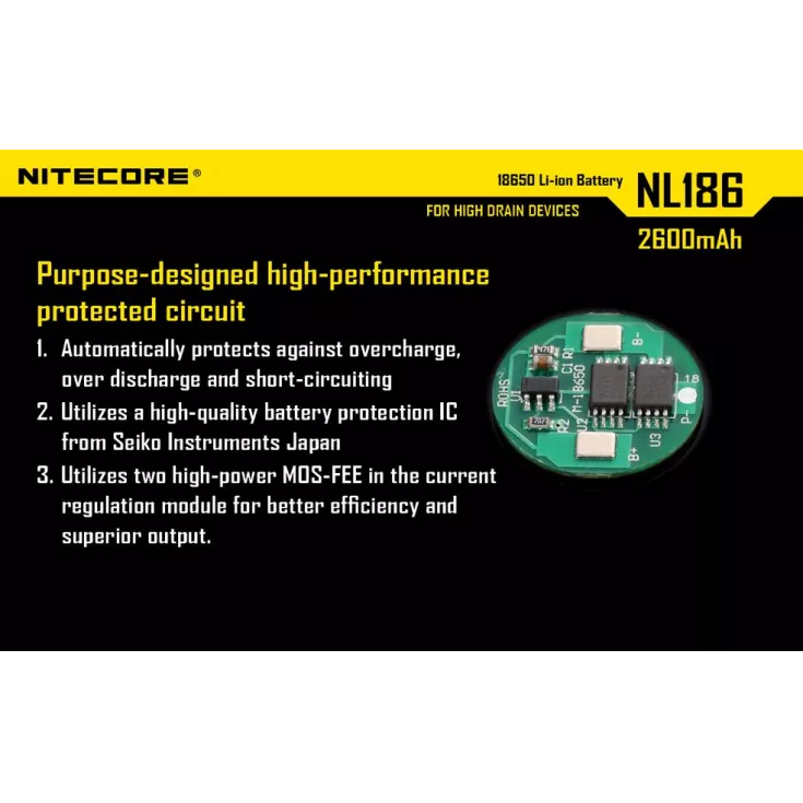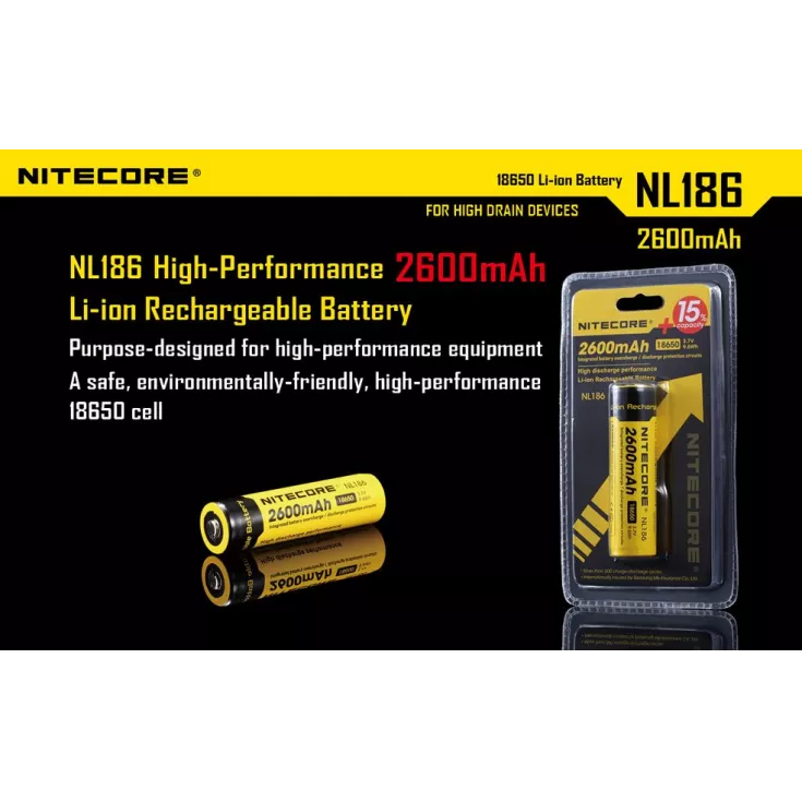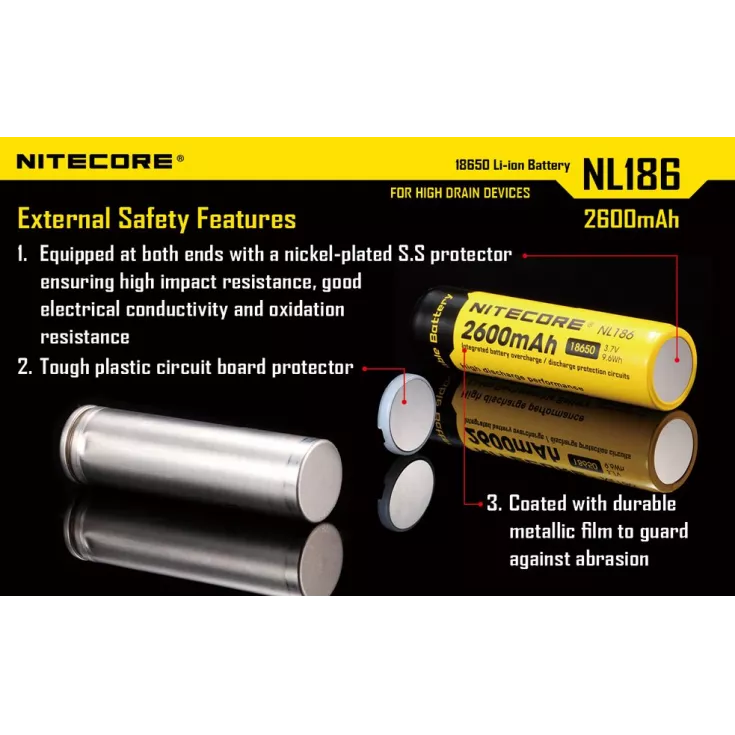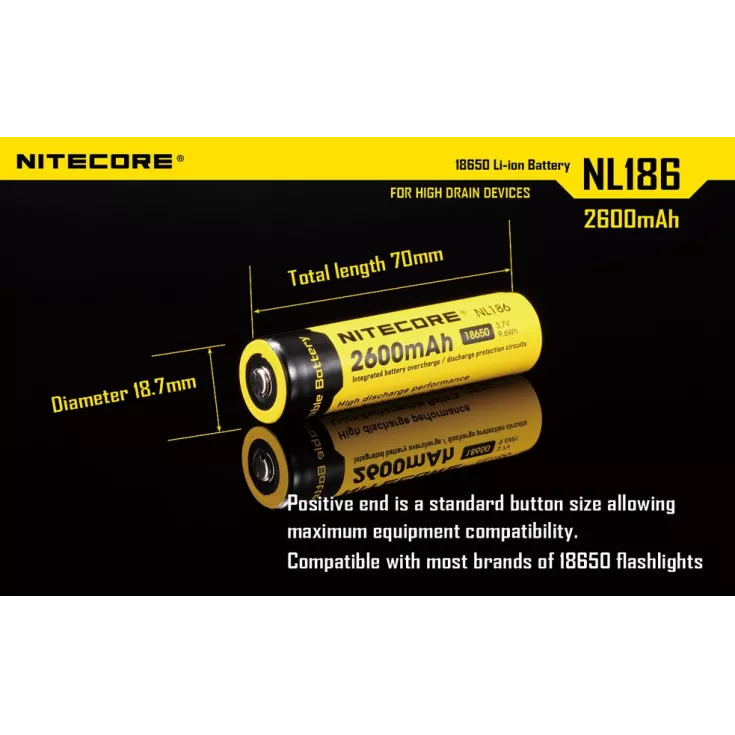 High quality Li-Ion battery from Nitecore. Purpose designed for high performance flashlights with protected circuit.