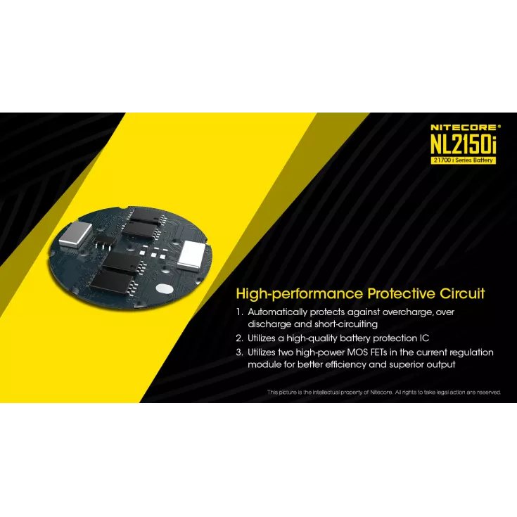 The Nitecore NL2150i 21700 battery is specifically designed for the Nitecore i Series, including the P10i and P20i flashlights. The cell has a capacity of 5000mAh and a maximum continuous discharge of 8A.