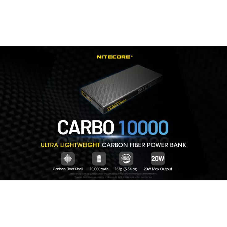 The Nitecore Carbo 10000 is an ultra lightweight, ultra slim power bank weighing just 157g. It is made with a corrosion resistant and durable carbon fiber body offering optimal protection.