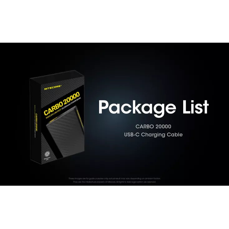 Included: Carbo 20000 power bank, USB-C cable