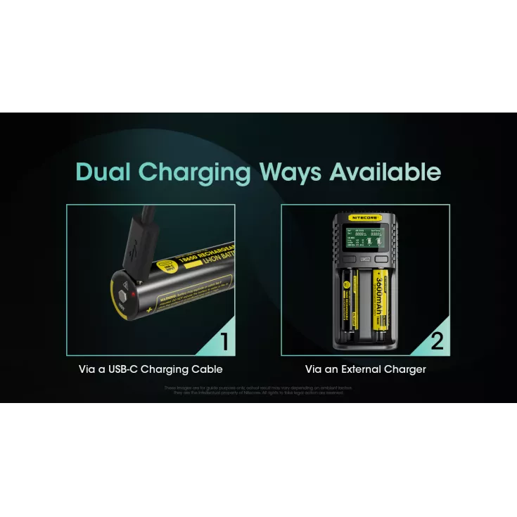 The Nitecore NL1836R is a USB-C rechargeable 18650 Li-ion battery. With its own built in USB-C port, the NL1836R battery can be charged via a USB-C charging cable or with an external charger.