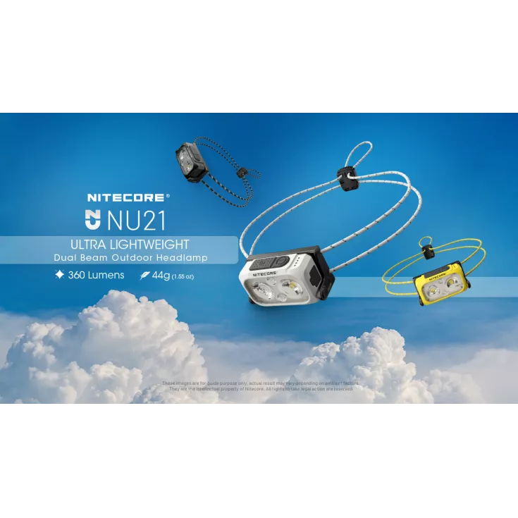 The Nitecore NU21 is an ultra lightweight dual beam rechargeable outdoor headlamp with a maximum output of 360 lumens and weighing just 44 grams.