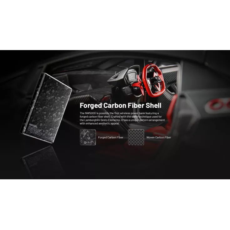 The Nitecore NW5000 is a magnetic wireless power bank with a carbon fiber shell making it extremely lightweight, weighing in at just 120g/4.23oz