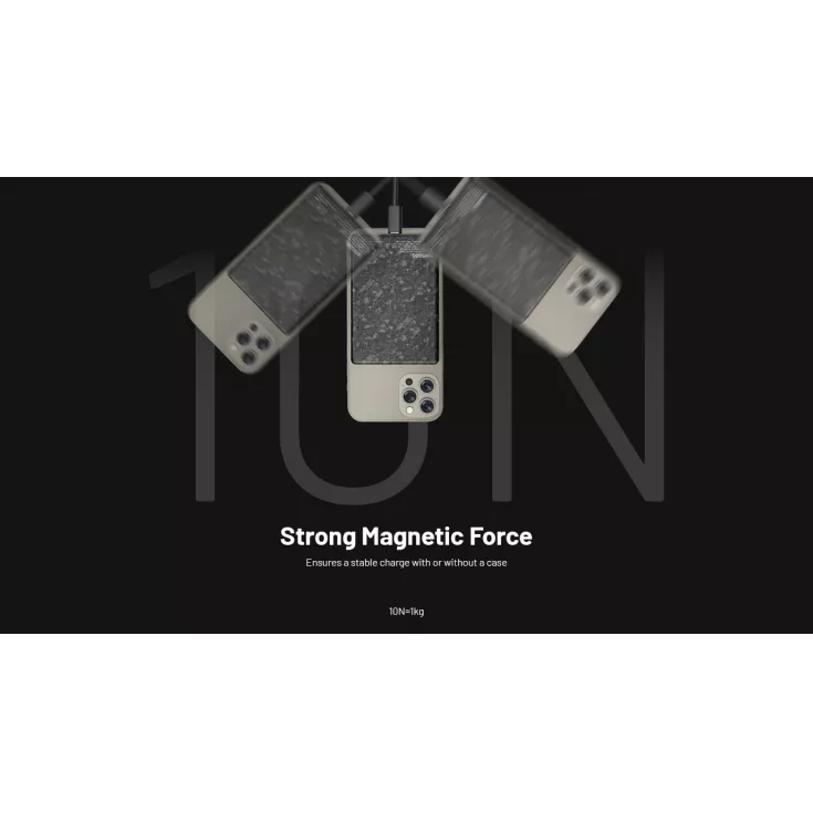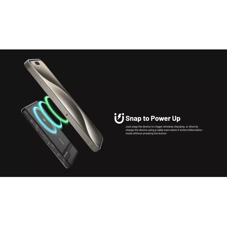 The NW5000 uses a strong magnetic force. Magnetically attach the device to trigger wireless charging (on suitable mobile devices) alternatively directly charge any device using a cable. The power bank features a power level display. When low on power, simply recharge the power bank using a USB-C charging cable (not included).