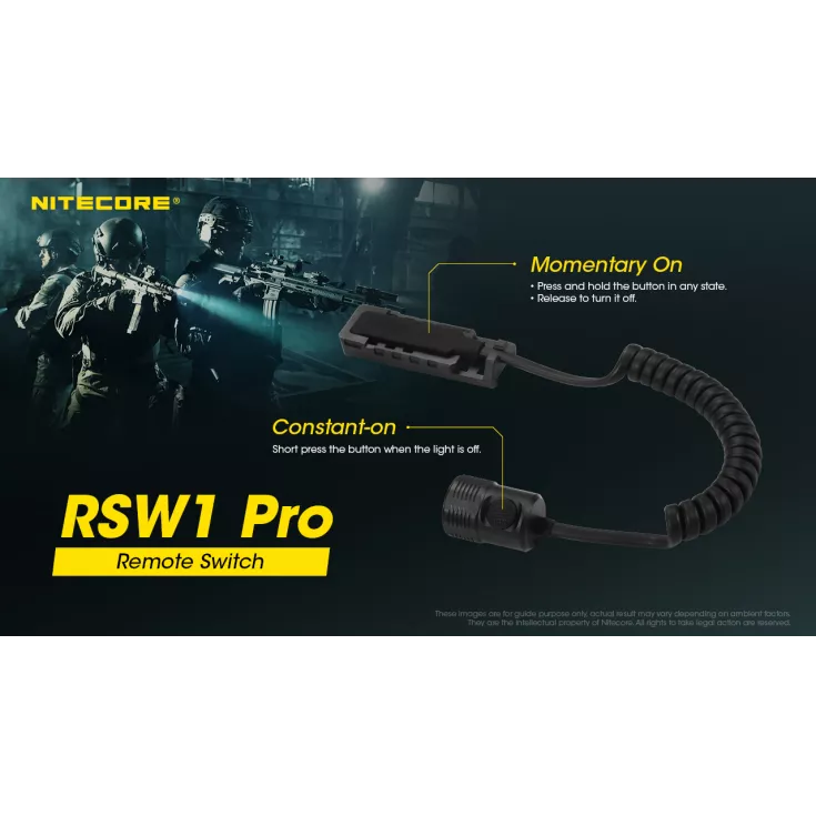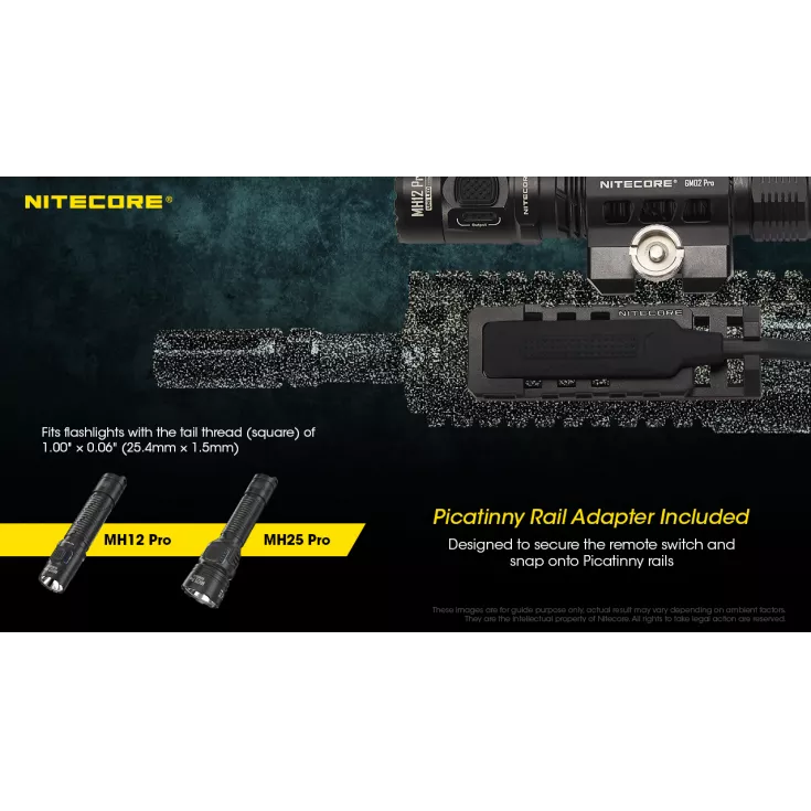 The Nitecore RSW1 Pro Remote Pressure Switch is compatible with the Nitecore MH12 Pro and MH25 Pro flashlights.