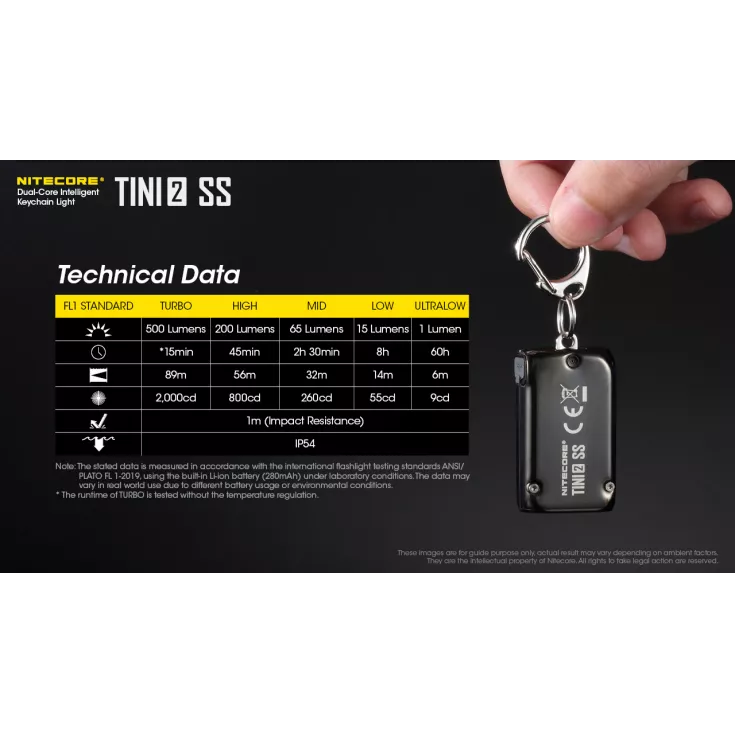 Nitecore TINI 2 SS Includes: key ring clasp and built-in battery.
