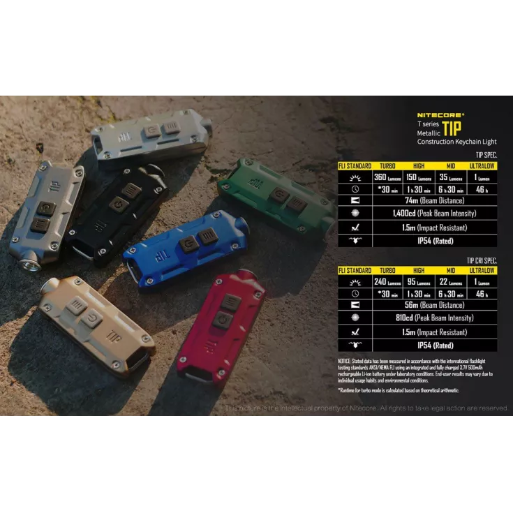 Powered by an integral 500mAh rechargeable Li-ion battery, the Nitecore TIP CRI is simple to charge and can run for as long as 46 hours on the lowest brightness setting. An intelligent protective circuit provides over-discharge and over charge protection.