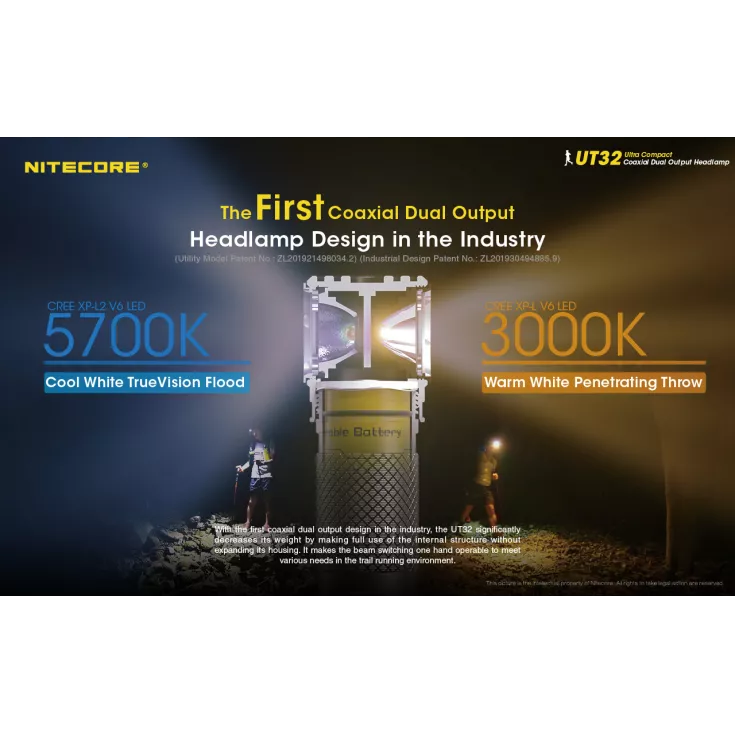 The Nitecore UT32 is the first coaxial dual output light to hit the market. Designed primarily for trail running, the two different LED / reflector setups allow the user to select the most suitable for the conditions faced: