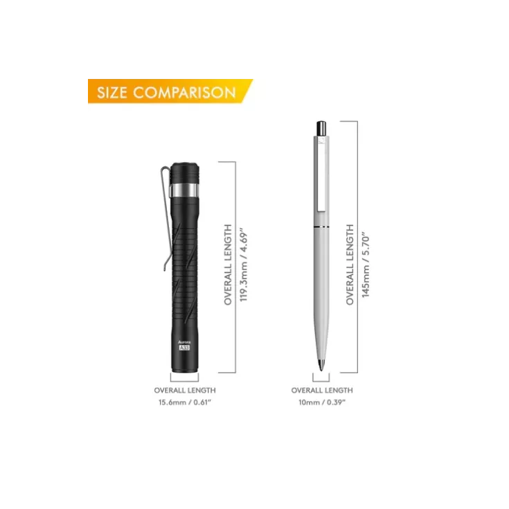 The A33 is made from aluminium alloy with dragon scale knurling for a unique look and great grip. It also includes a pocket clip for secure attachment to your clothing or accessories.