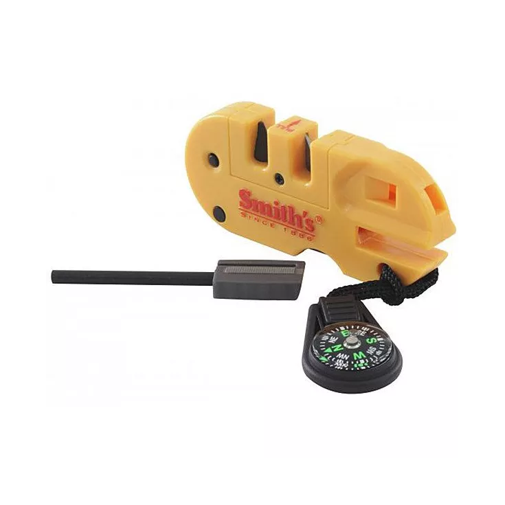 Introducing the next generation Pocket Pal®, the Pocket Pal® X2 Sharpener and Survival Tool. Like the current Pocket Pal, the new X2 is lightweight, compact, and durable, but this new version comes with all the added features of a standard survival kit. It features the same COARSE and FINE pull-through sharpening slots and fold out, tapered diamond rod as the current Pocket Pal but adds a fire starter, compass, LED light, and survival whistle to its compact frame. It’s the perfect tool for backpackers, hikers, campers, and outdoor sports enthusiasts.
