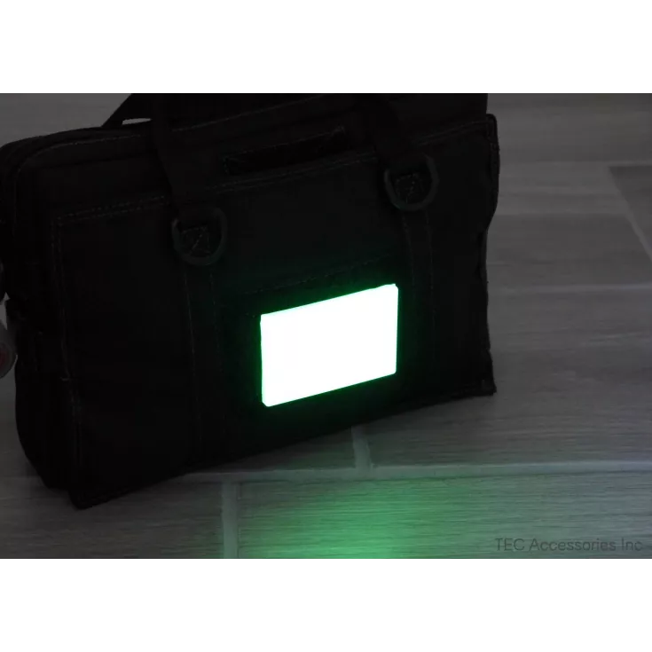 The patch is made from TEC Accessories’s Embite technology which takes its ‘charge’ from exposure to sun or UV light; the longer the exposure time and the higher the light intensity, the longer and brighter it will glow. On the reverse is the ‘hook’ side of a standard Hook and Loop fastener system which allows for attachment to any ‘loop’ surface. The mating Loop material is also included ith a strong adhesive backing so that the patch can be attached to anything!