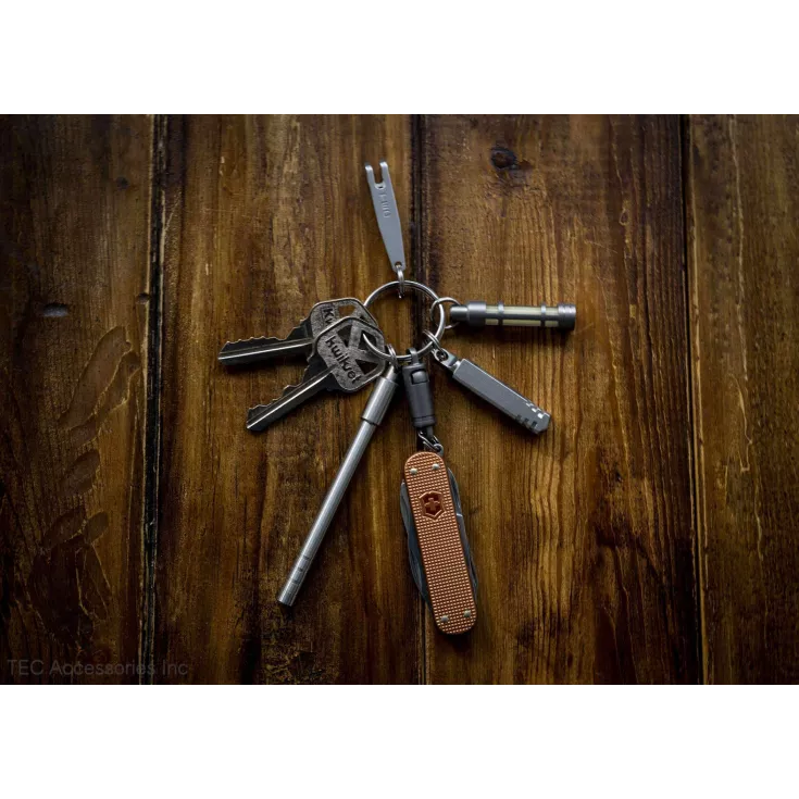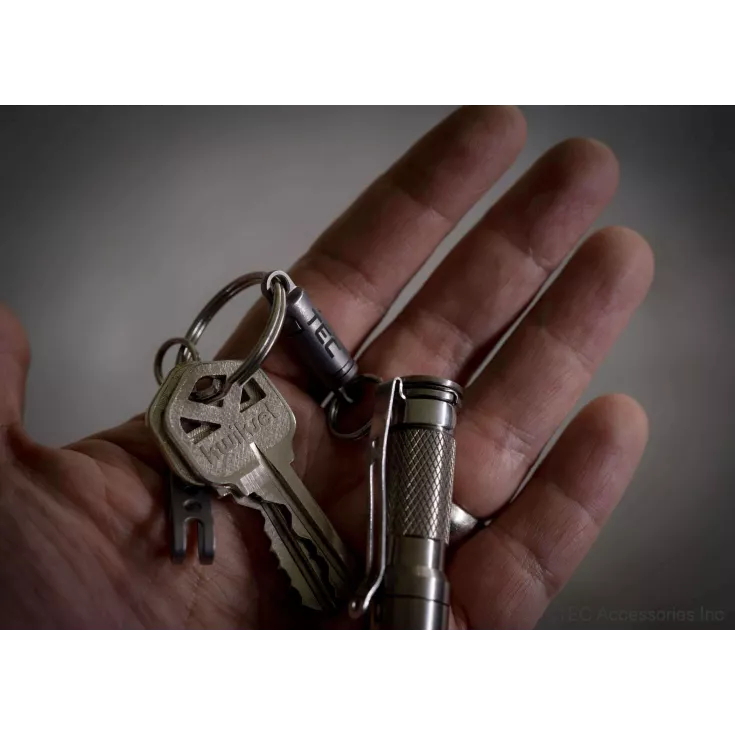 The TEC Accessories Python QR (PQR-001-T-T-NAT) is a smart keyring gadget that allows you to securely attach your gear to a keyring, bag, clothing or other accessory, with the option for quick release if needed. The clip is made from grade 5 titanium, making it strong, lightweight, and corrosion resistant.